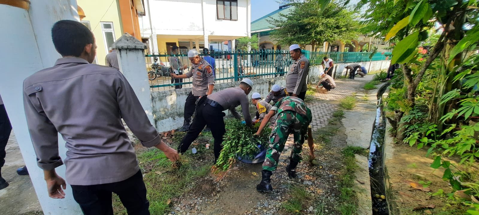 Jumat Bersih,Polsek Langsa melakukan kerja Bakti di Masjid Taqwa pb.Blang Pase wilkum Polsek Langsa.