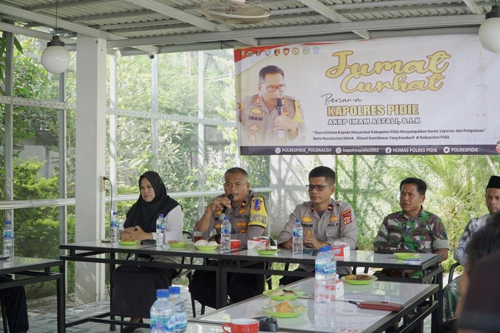 TODAYBERITA.COM| Sigli – Bertempat di Cofee Doppio SPBU Gintong Kecamatan Grong-grong Kabupaten Pidie, Jumat (8/09/2023) dilaksanakan kegiatan Jumat Curhat Polres Pidie.