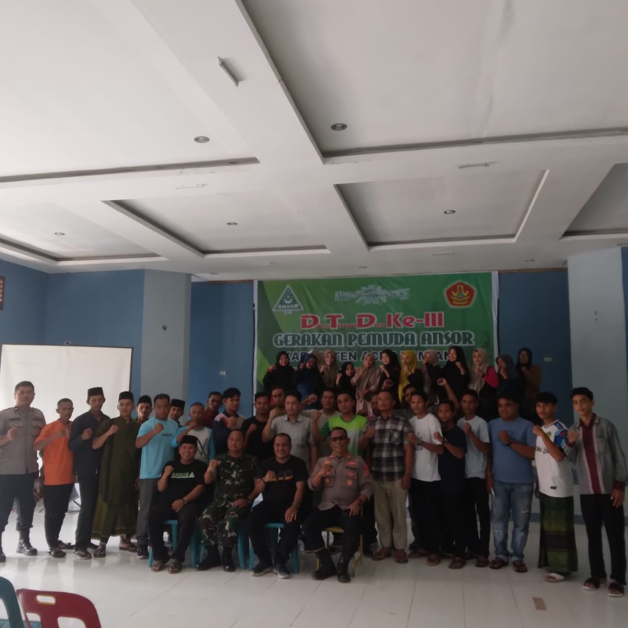 TODAYBETIRA.COM| Aceh Tamiang – Bertempat di aula SMK N 1Bendahara, Kabag SDM Polres Aceh Tamiang AKP Simson Purba, S.H menjadi Pemateri dalam Kegiatan DTD III GP Ansor. Sabtu (02/09) Pagi.