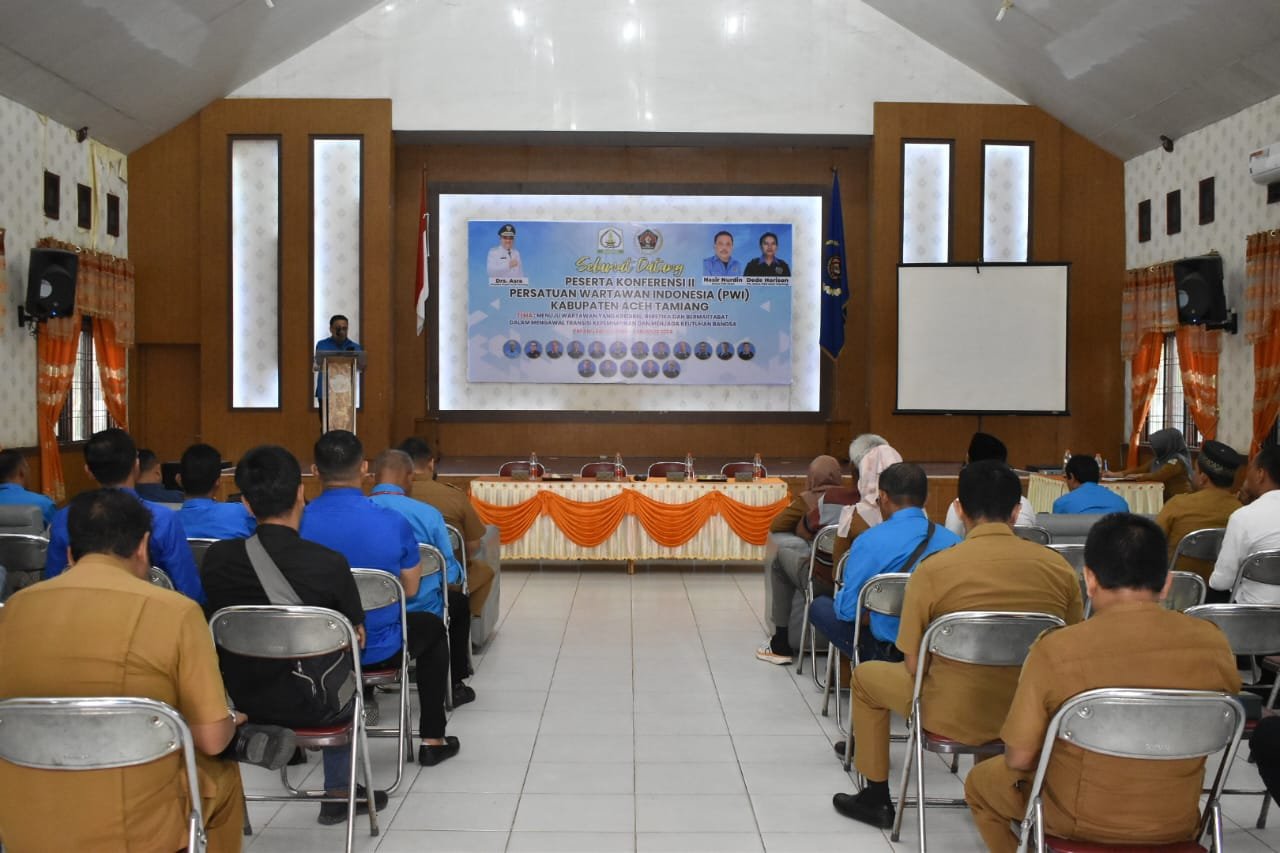 TODAYBERITA.COM | ACEH TAMIANG – Polda Aceh, Kapolres Aceh Tamiang AKBP Muliadi, S.H, M.H, diwakili Kasi Humas IPTU Ismail Y menghadiri Acara Konferensi Ke II PWI ( Persatuan Wartawan Indonesia ) Kabupaten Aceh Tamiang bertempat di Aula SKB Kabupaten Aceh Tamiang. Selasa (30/07/2024).
