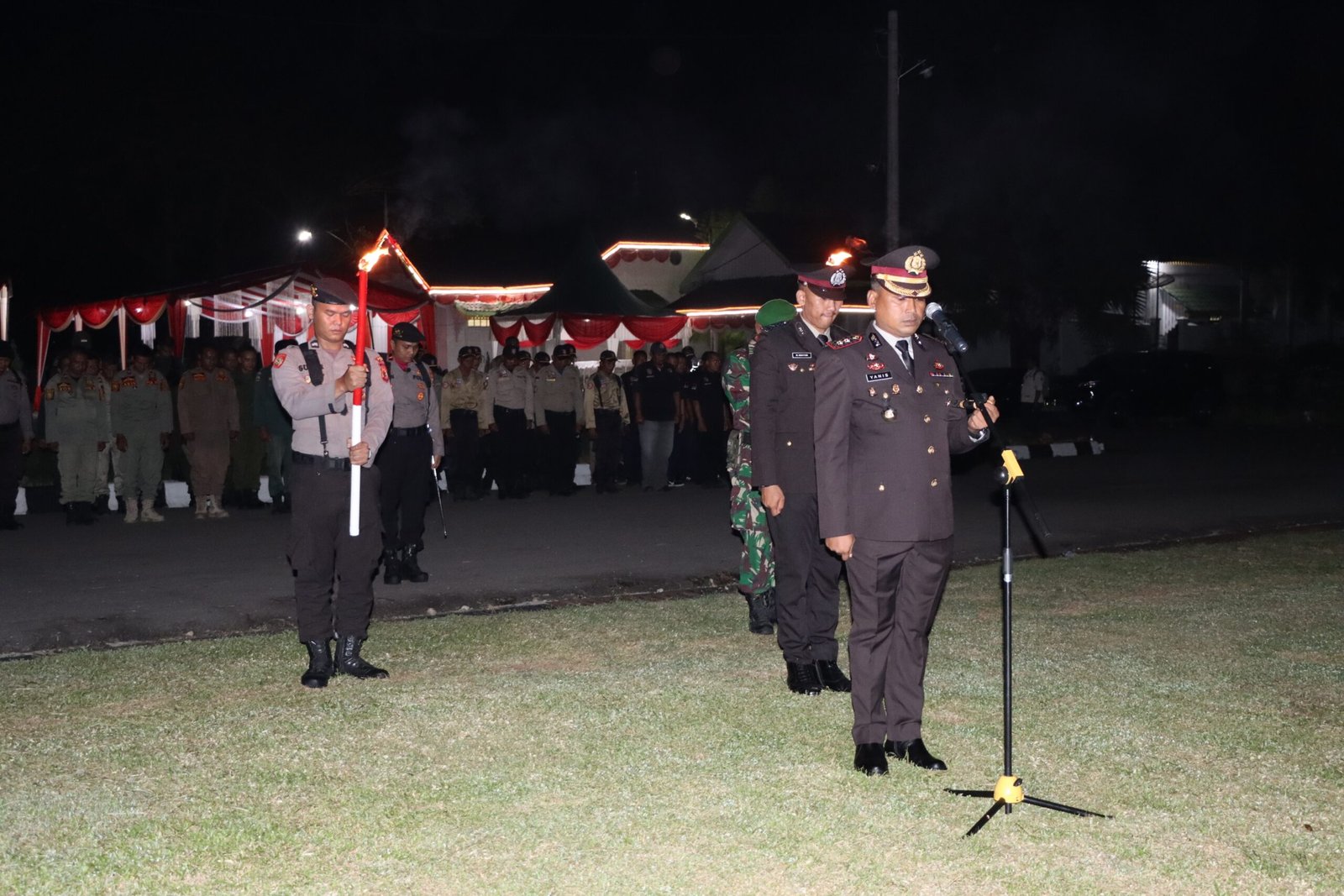 TODAYBERITA.COM | Aceh Tamiang -Menyambut detik- detik hari Kemerdekaan Republik Indonesia Ke-78, Kapolres Aceh Tamiang AKBP Muhammad Yanis, S.I.K, M.H memimpin Apel Kehormatan dan Renungan Suci di Taman Makam Pahlawan Kota Kuala Simpang Kabupaten Aceh Tamiang Tepat pukul 00.00 Wib Dini Hari. Kamis (17/08).