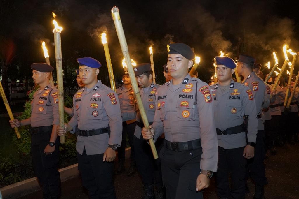 Selesai pelaksanaan upacara Kapolres Pidie AKBP Imam Asfali SIK bersama Forkopimda Pidie melepas pawai obor yang menempuh rute Pendopo Bupati Pidie terus menuju ke Jalan Iskandar Muda dan kembali ke tempat pelaksanaan upacara.**(R)