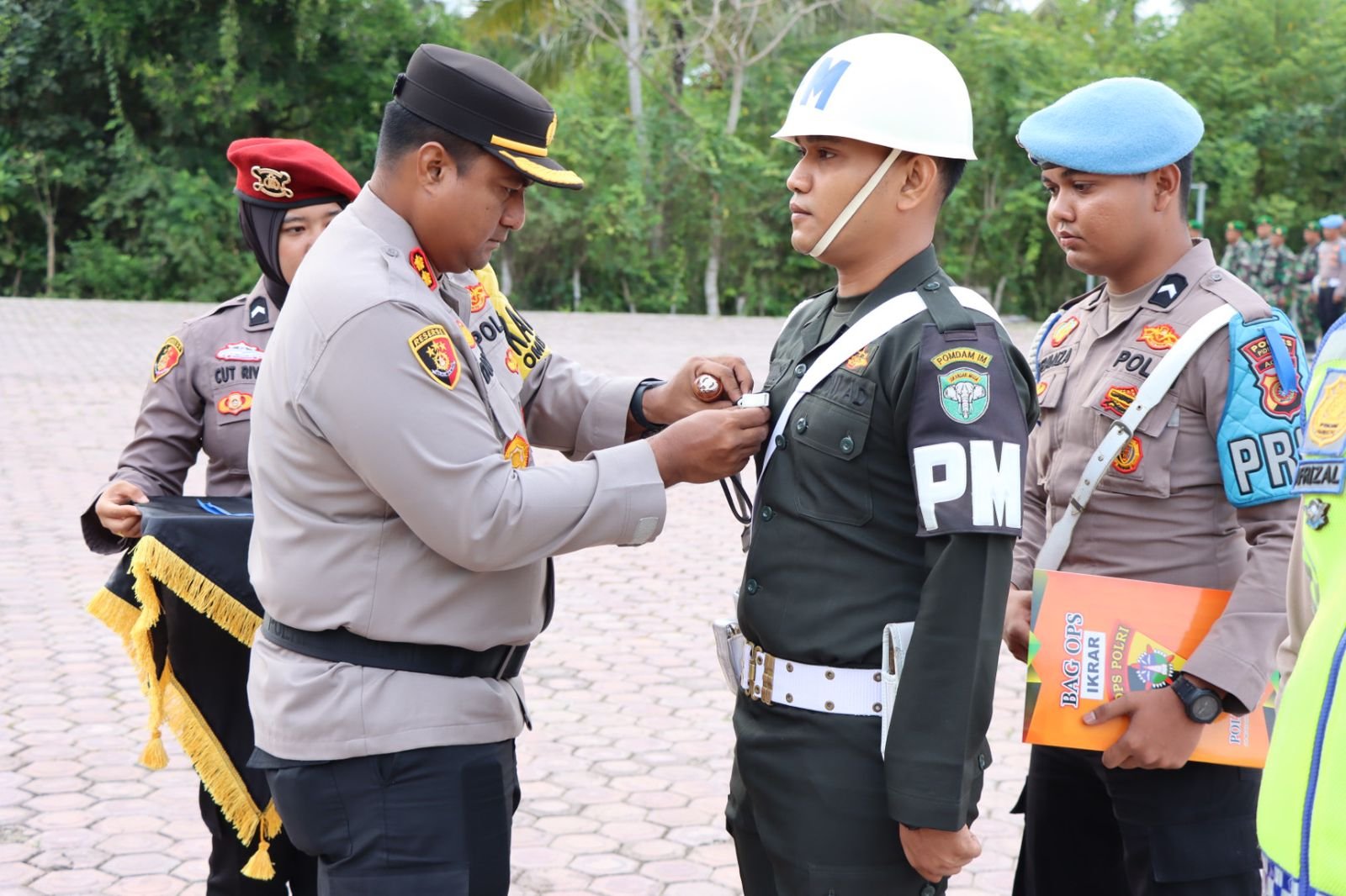 Kapolres Pidie Jaya membacakan amanat Kapolda Aceh menyampaikan seluruh personil yang terlibat dalam operasi keselamatan ini untuk melaksanakan tugas dengan penuh tanggung jawab, integritas, dan profesionalisme.