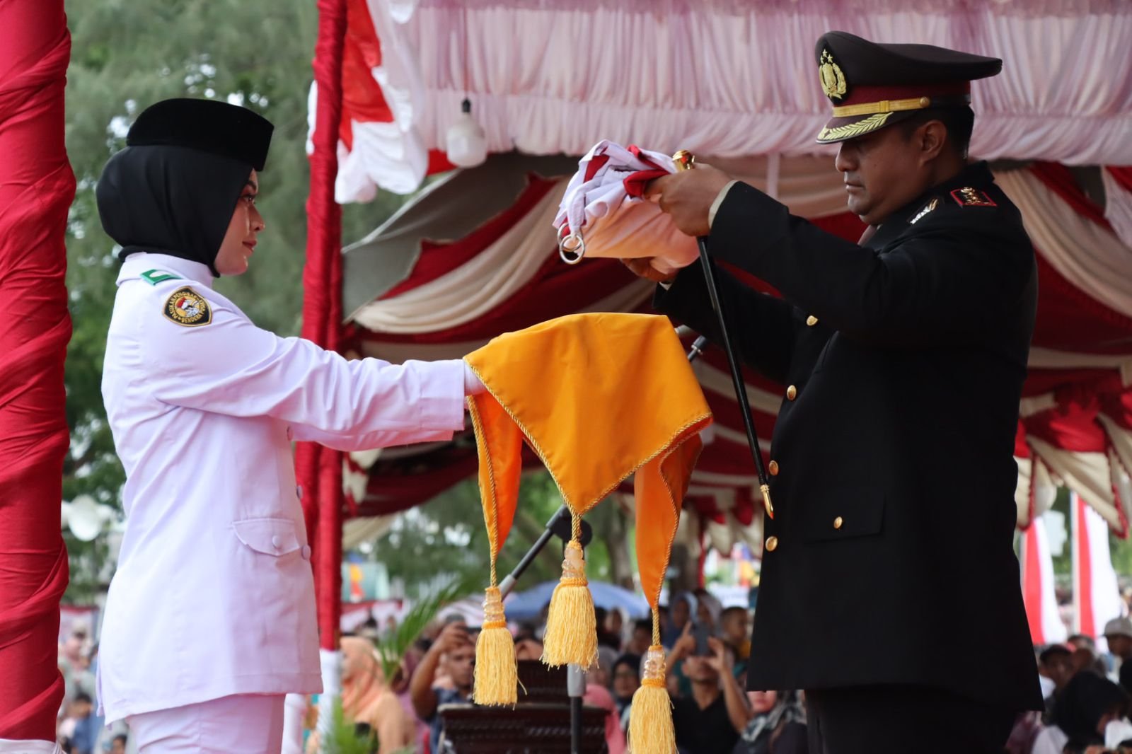 Kapolres Pidie Jaya Bertindak Sebagai Irup Penurunan Bendera Merah Putih HUT Kemerdekaan RI ke-78
