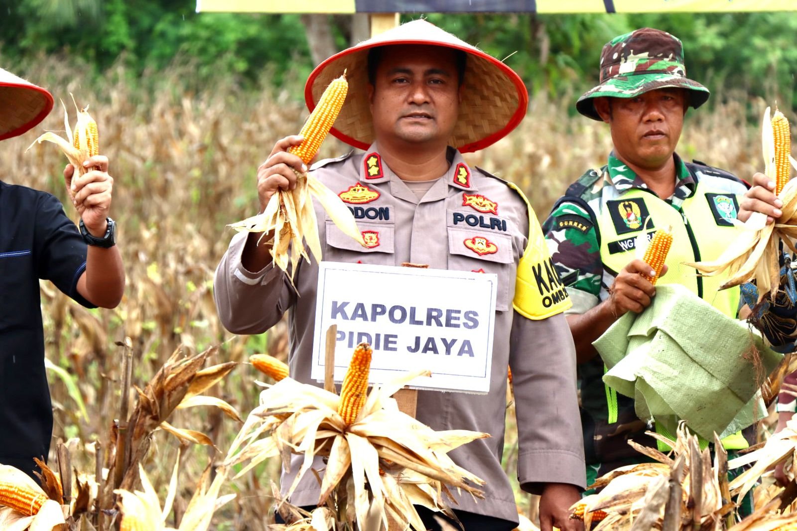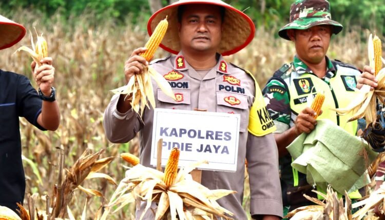 Kapolres Pidie Jaya Hadiri Panen Jagung Perdana Program I’M Jagung Kodim 0102 Pidie Tahun 2023