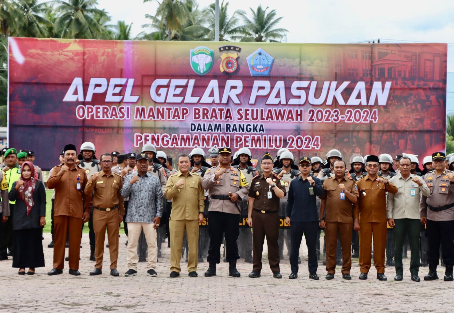 TODAYBERITA.COM| Pidie Jaya – Kapolres Pidie Jaya memimpin Apel Gelar Pasukan Operasi Mantap Brata Seulawah 2023-2024 yang bertujuan untuk memastikan kesiapan personil dan peralatan dalam menjaga pengamanan selama Pemilu 2024. Acara ini digelar di halaman Mapolres Pidie Jaya. Selasa (17/10/23)