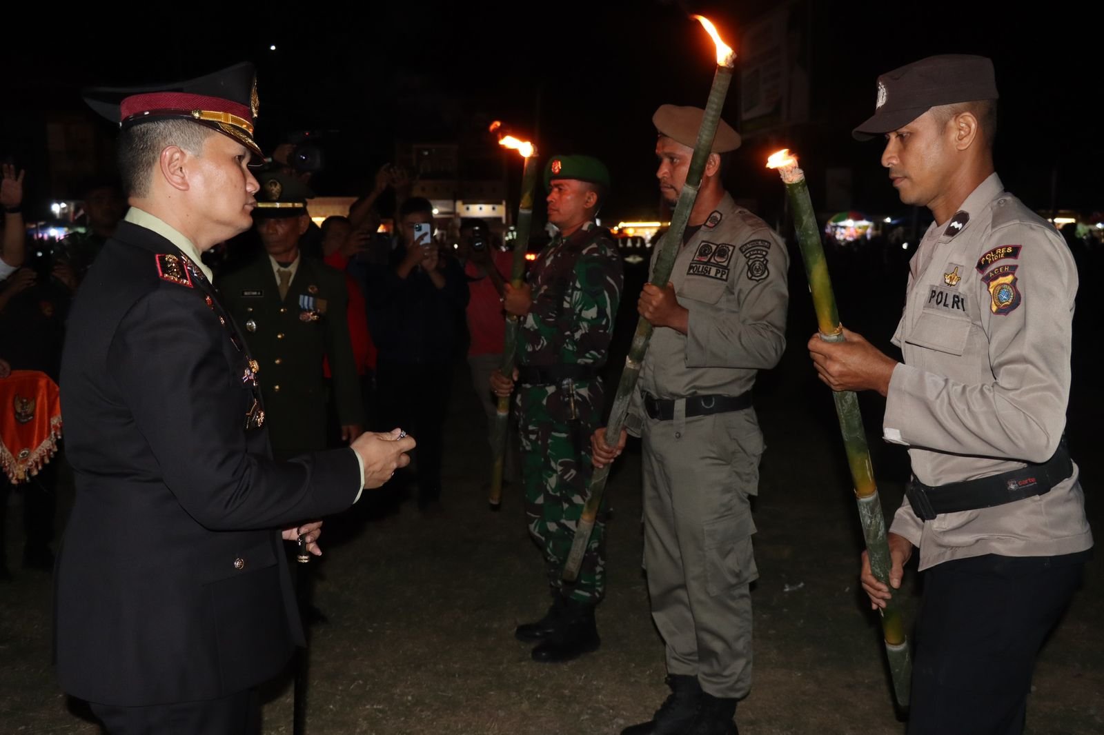 Upacara Taptu dan pawai obor tersebut dihadiri oleh unsur Forkopimda, pejabat utama (PJU) Polres Pidie Jaya, para Kapolsek jajaran, personel TNI-Polri, ASN Pemerintah Kabupaten Pidie Jaya, pelajar, serta berbagai lapisan masyarakat dan tamu undangan.