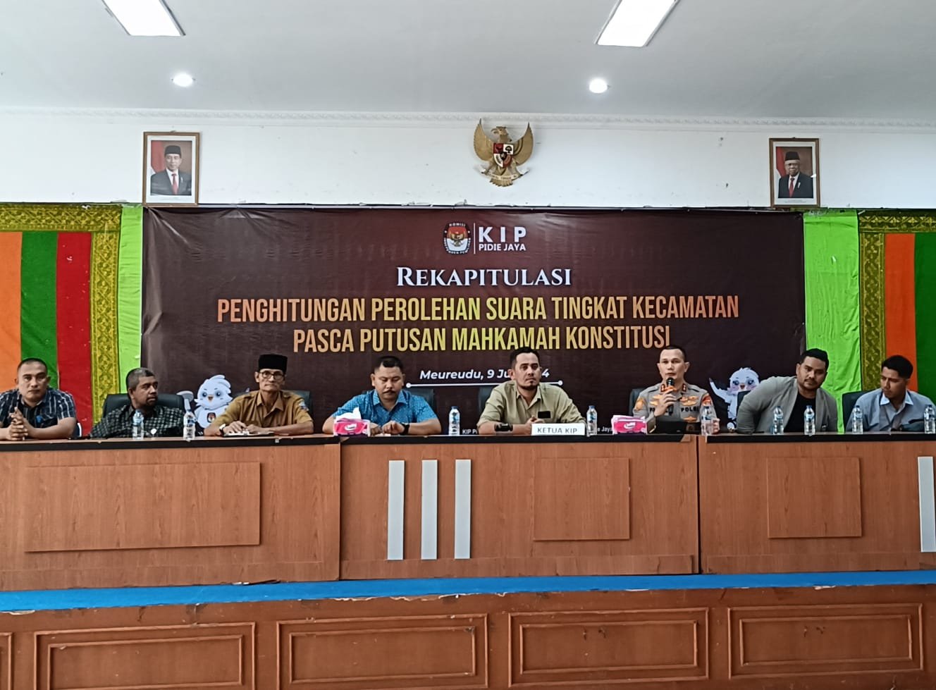 Rapat pleno dipimpin langsung oleh Kapolres Pidie Jaya AKBP Ahmad Faisal Pasaribu, S.H., S.I.K., M.H. dan Ketua KIP Pidie Jaya Iskandar, S.Sos., juga didampingi oleh Pabung Dim 0102 Pidie, komisioner Panwaslu Pidie Jaya, staf ahli Bupati bidang hukum, serta dihadiri oleh para saksi dari partai politik Parnas dan Parlok.