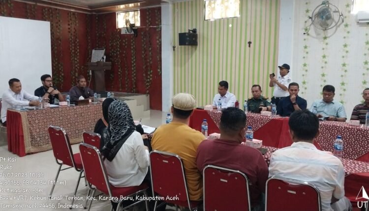 TODAYBERITA.COM |Aceh Tamiang – Kapolsek Kualasimpang, Iptu Amril Bakhri, SH diwakili Panit Intelkam hadiri giat sosialisasi rencana penataan kios diatas tanah PT Kereta Api Indonesia (KAI) di Hotel Syari’ah Sederhana Karang Baru, Aceh Tamiang, Rabu (26/07).
