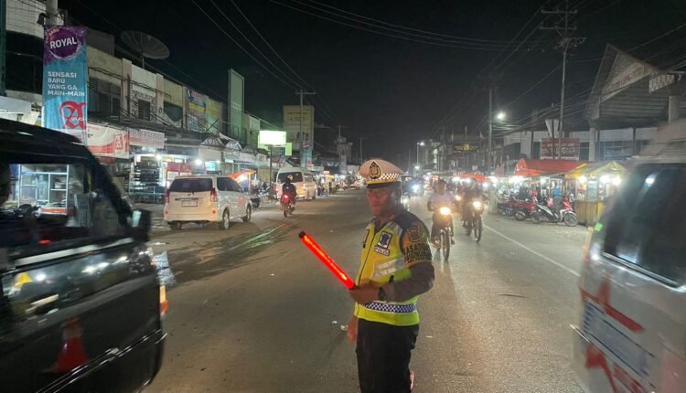 Kasat Lantas Polres Pidie Jaya Memimpin Pengaturan Lalu Lintas Libur Idul Fitri di Bandar Baru