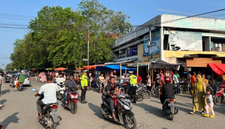 Keselamatan Diprioritaskan: Satlantas Polres Pidie Jaya Siaga Selama Hari Meugang di Pasar Kota Meuredu