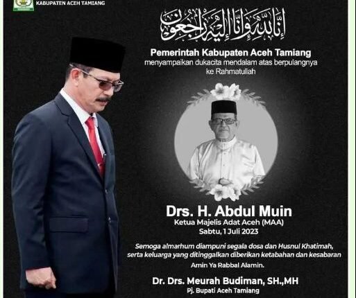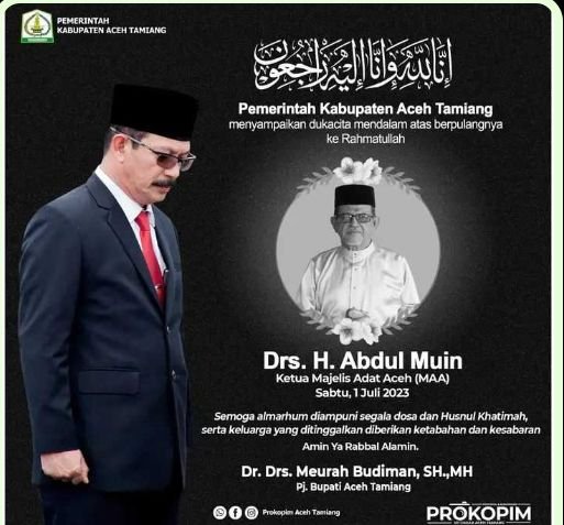 TODAYBERITA.COM-|Aceh Tamiang – Prokopim: Pj. Bupati Aceh Tamiang, Dr. Drs. Meurah Budiman, SH, MH, mengungkapkan dukacita mendalam atas berpulangnya Ketua Majelis Adat Aceh (MAA) Kabupaten Aceh Tamiang, Drs.H. Abdul Muin, pada Sabtu (1/7/23) siang ini.