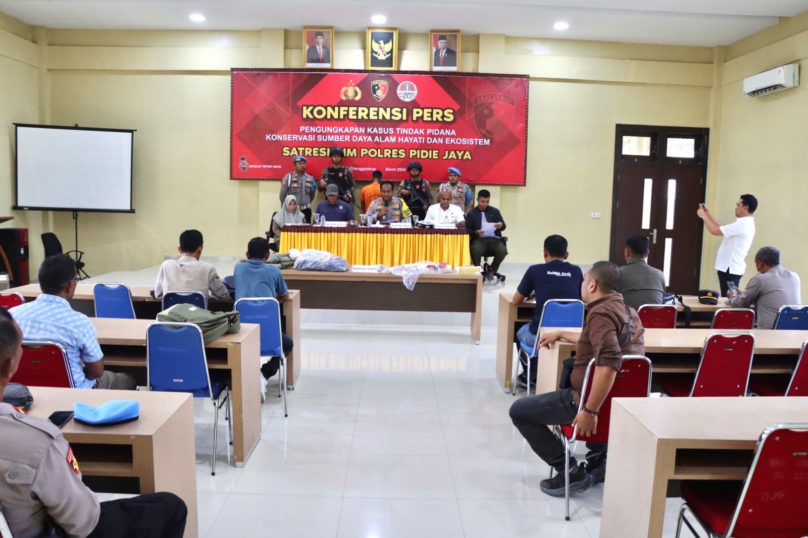 Konferensi Pers Polres Pidie Jaya: Ungkap Kasus Kematian Gajah dan Pelanggaran Konservasi Lingkungan