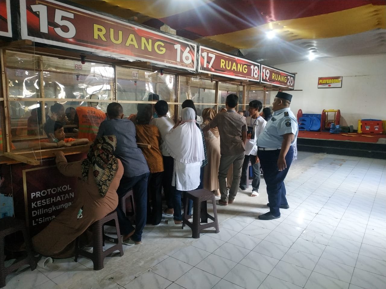 Antusias Pengunjung ini terlihat di hari pertama Hari raya idul Fitri 1444 H, Sabtu(22/4/2023). Banyak Pengunjung yang memanfatkan ini untuk mengunjungi keluarganya yang berstatus Tahanan atau WBP (Warga Binaan Pemasyarakatan) di Lapas Kelas I Malang. Seperti diberitakan sebelumnya, Kunjungan Tatap Muka serta Penitipan Barang dan Makanan tetap mulai 19 April 2023 hingga 25 April 2023. Kapasitas Pengunjung tiap Tahanan atau WBP juga ditambah menjadi maksimal 5 orang untuk Kunjungan Tatap Muka.