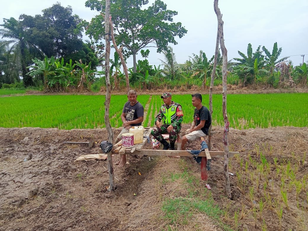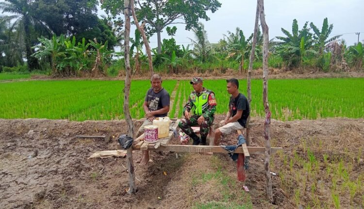 TODAYBERITA.COM | Aceh Tamiang – Dukung upaya pemerintah mewujudkan swasembada pangan, Babinsa Koramil 03/Seruway Serda Budi Utomo melaksanakan Kegiatan Komsos dengan Petani Padi dalam rangka pembinaan pemberdayaan petani dalam meningkatkan produksi padi bertempat di Desa Paya Udang, Kecamatan Seruway, Kabupaten Aceh Tamiang. Rabu (09/08/2023).