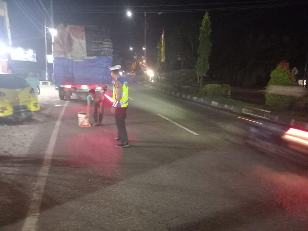 Selain itu, personil Satlantas memberikan himbauan kepada pengguna jalan bertempat di Jalan lintas Kecamatan Kuala simpang dan kawasan tertib Lalulintas (KTL) Kecamatan Karang Baru, Aceh Tamiang, Kamis 24 Agustus 2023 malam.