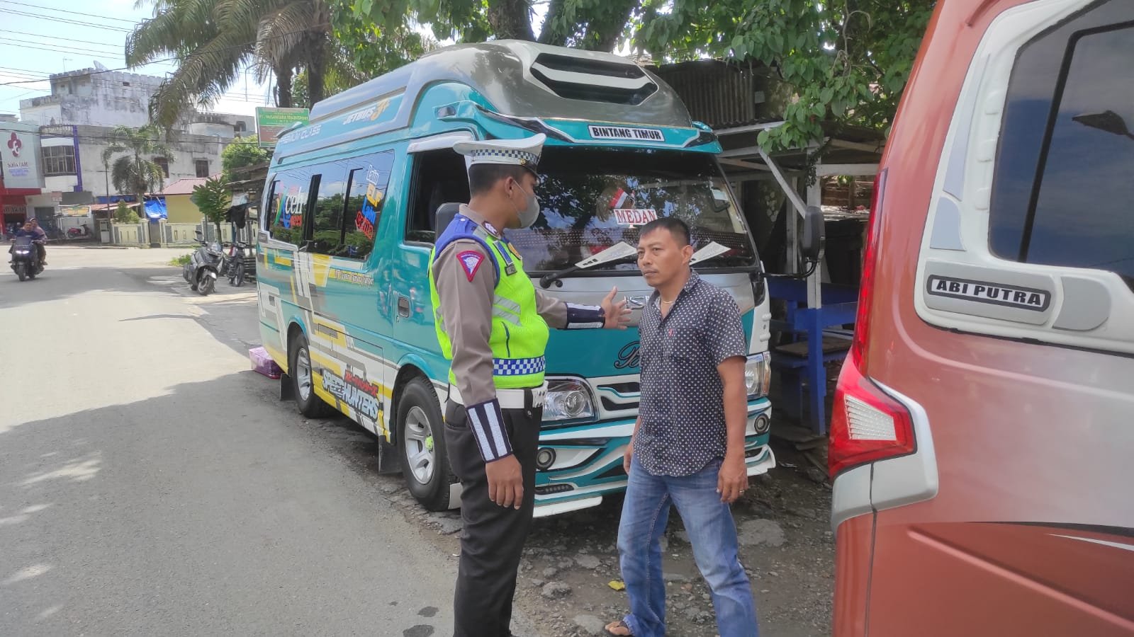 Selain itu, personil Satlantas memberikan himbauan kepada pengguna jalan bertempat di Jalan lintas Kecamatan Kuala simpang, Aceh Tamiang, Minggu 27 Agustus 2023.
