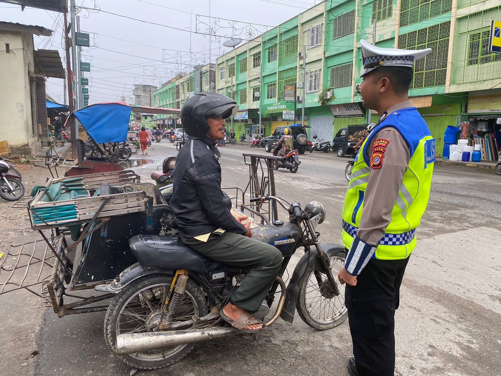 TODAYBERITA.COM| Aceh Tamiang — Personel Sat Lantas Polres Aceh Tamiang melakukan patroli dialogis tentang tertib berlalulintas.