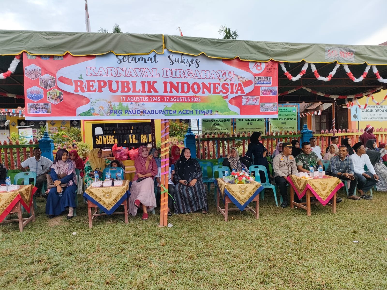 Kegiatan pelaksanaan pawai dalam rangka Memperingati Hari Kemerdekaan Republik Indonesia Ke 78 Tahun 2023 di Kec.Sungai Raya Kab.Aceh Timur yang mana pesertanya terdiri dari : TK / PAUD Negeri Pembina Kec.Sungai Raya : 46 Orang TK / PAUD Negeri Bukit Selamat : 25 Orang TK / PAUD Negeri Glumpang Payong : 20 Orang TK / PAUD Nurul Fatimah : 26 orang