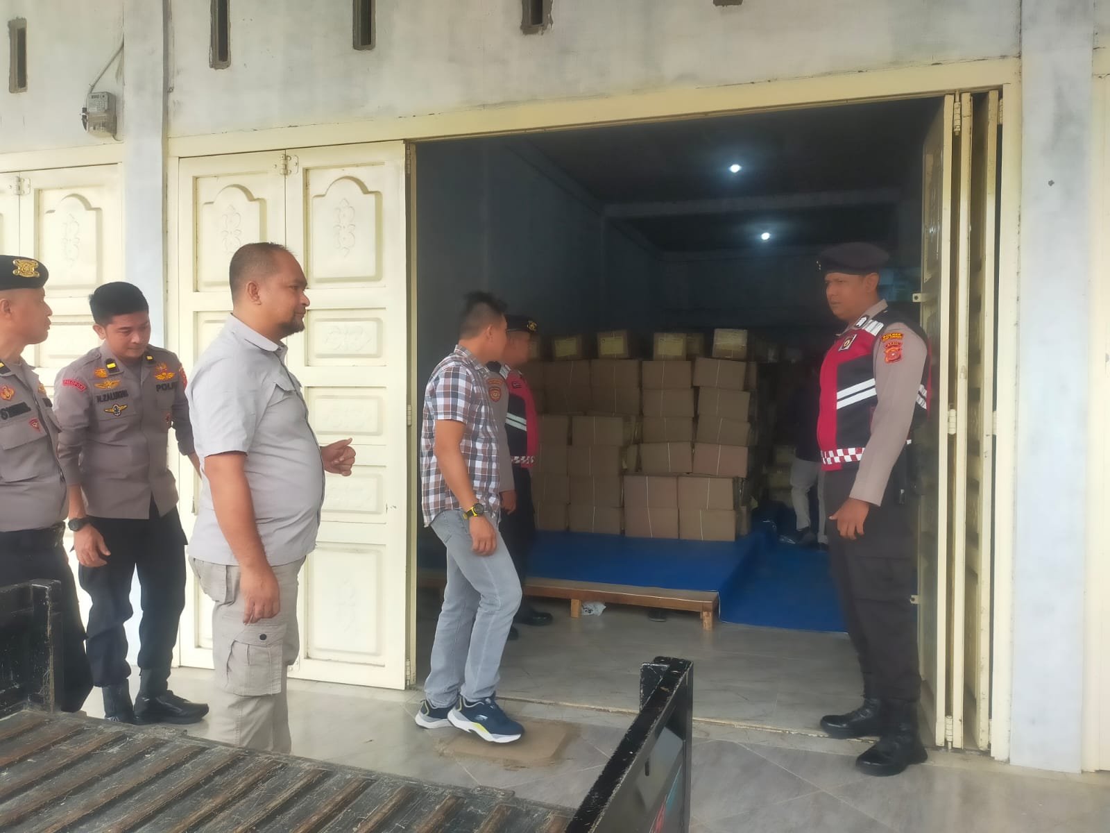 TODAYBERITA.COM – Aceh Tamiang | Polda Aceh, Unit URC Sat Samapta melakukan pengawalan dan pengamanan surat suara Pemilu 2024 dari Gudang Logistik KIP ke Gedung Sport Center Kabupaten Aceh Tamiang. Selasa. (16/01/24).