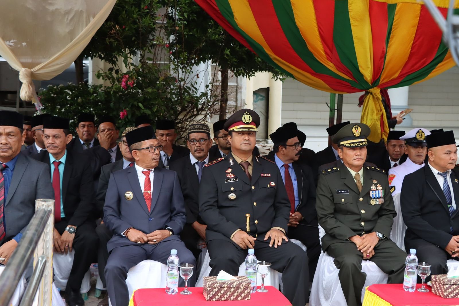 Upacara tersebut langsung dipimpin oleh Wakapolres Pidie Jaya, Kompol Muara Uli Hamonangan. Sedangkan Kapolres Pidie Jaya, AKBP Dodon Priyambodo mengikuti acara tersebut di Halaman Kantor Bupati Pidie Jaya bersama pejabat setempat.