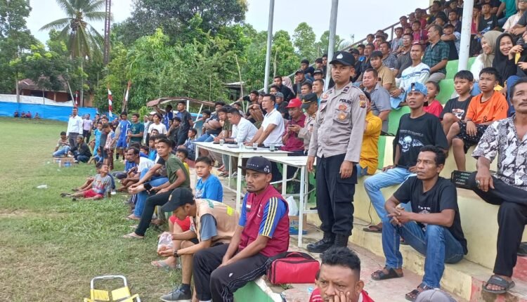 TODAYBERITA.COM|Aceh Tamiang -Personel polres Aceh Tamiang bersama Personel Polsek Jajaran melakukan pengamanan Open Turnamen Sepak Bola Nasir Djamil Cup I hari di Kecamatan Kuala Simpang, Kabupaten Aceh Tamiang. Sabtu (14/10).