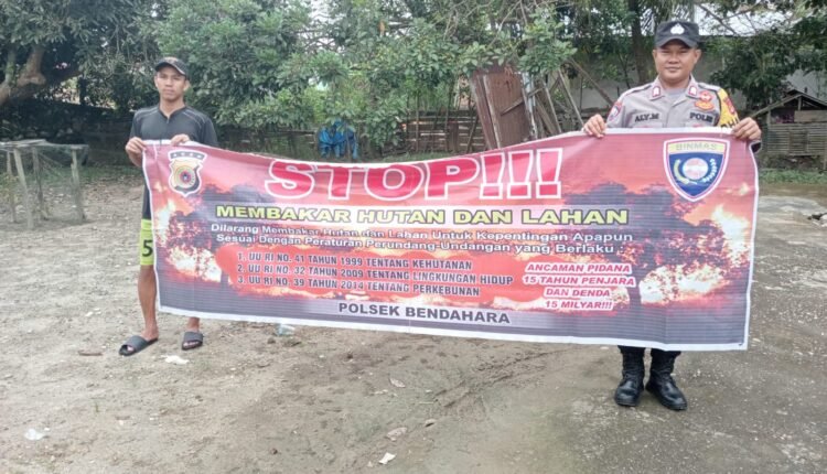 TODAYBERITA.COM| Aceh Tamiang – Polres Aceh Tamiang, Personil Polsek Bendahara melakukan Patroli sekaligus menyampaikan sosialisasi bahayanya melakukan pembakaran dalam rangka pencegahan dan himbauan terkait kebakaran hutan dan lahan (Karhutla). Kamis (30/11/2023).