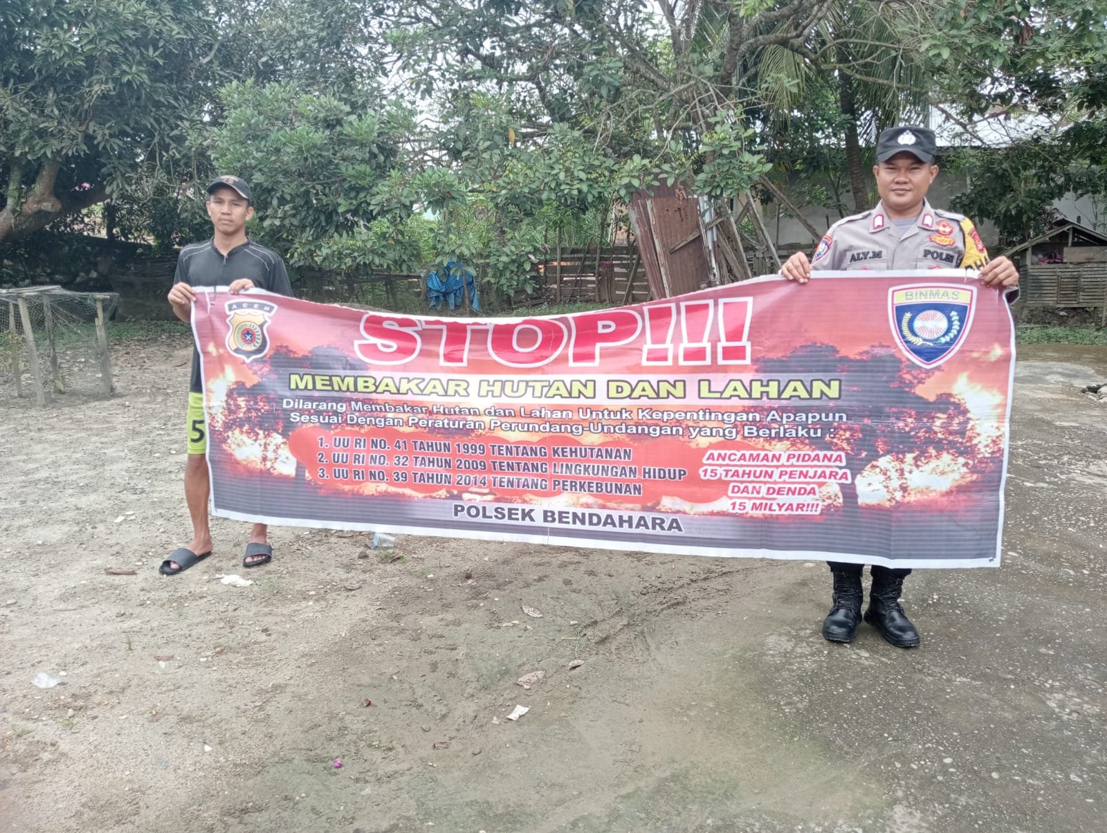 Sanksi berikutnya, sambung Kapolres, karena lalainya membakar Hutan dan lahan di Ancam Pidana Penjara 5 Tahun dan Denda 1.5 Milyar Rupiah (UU RI No 18 Tahun 2014 Tentang Kehutanan, Yakni Pasal 78 Ayat 2 ).
