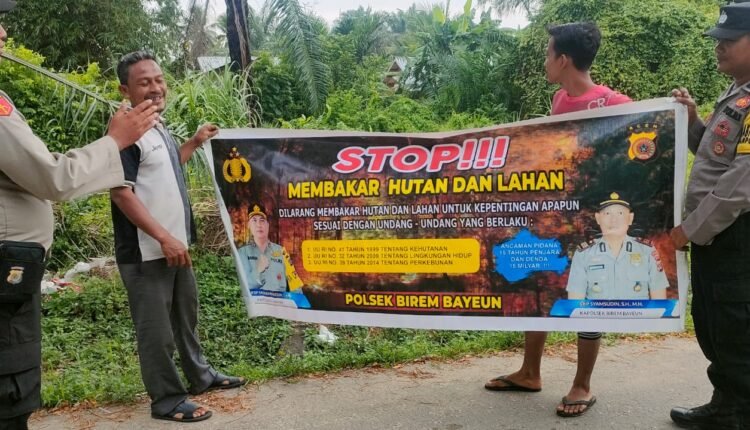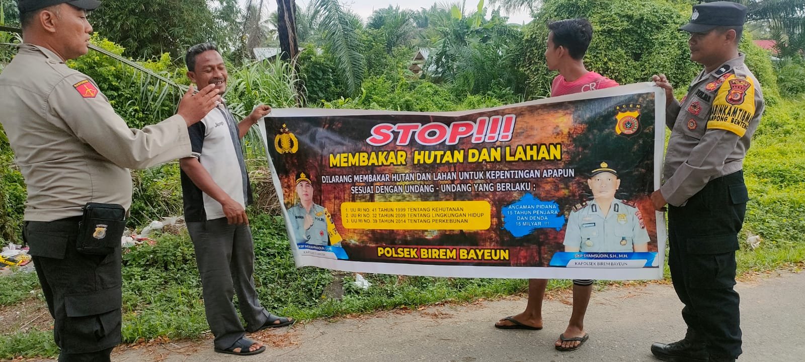 Personel Polsek Birem bayeun Laksanakan Sosialisasi Dan Pasang Spanduk Himbauan Karhutla