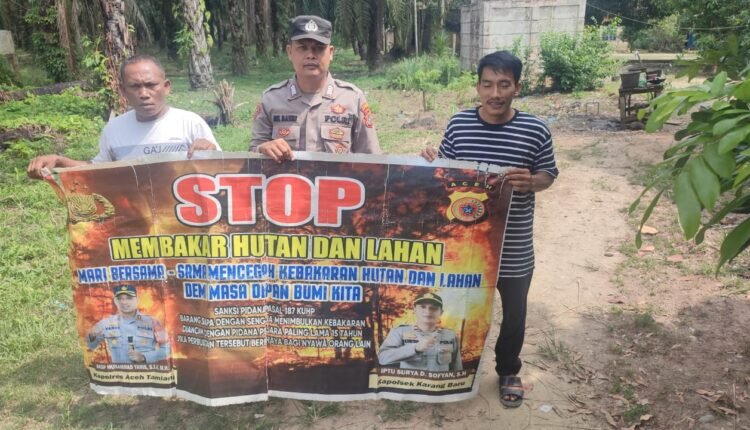 Personel Polsek Karang Baru Gencar Berikan Himbauan karhutla serta Berikan Edukasi Cegah Karhutla