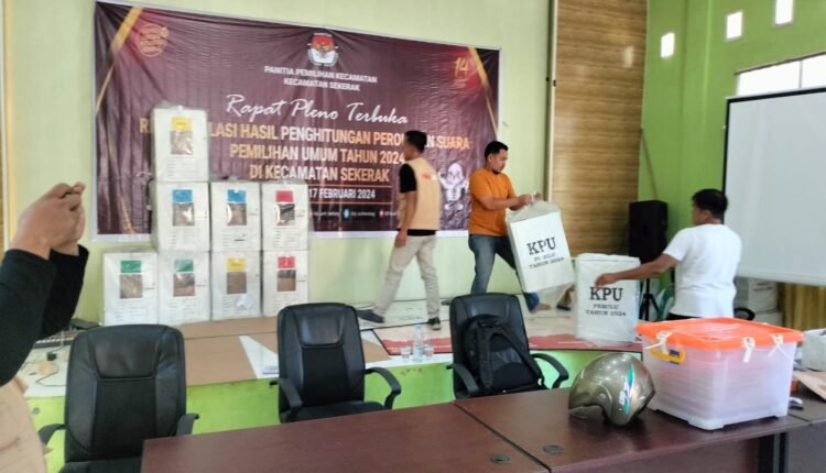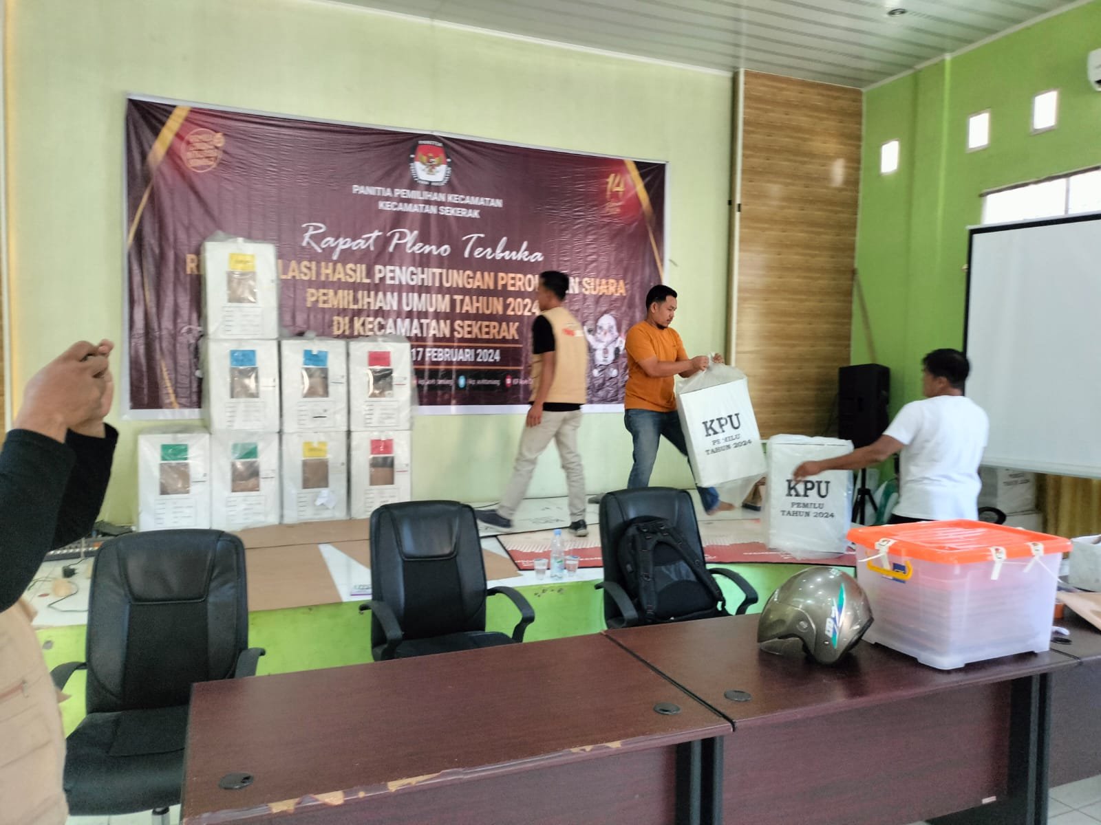Logistik Pemilu 2024 dari Kecamatan Sekrak ini akan bergeser dari kantor PPK Kecamatan Sekrak menuju gudang Logistik II KIP Aceh Tamiang.