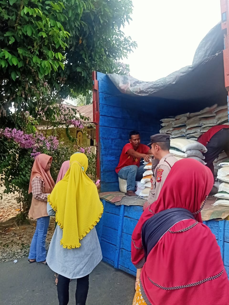 Personel polsek Karang Baru Monitoring Pembagian Bansos Beras