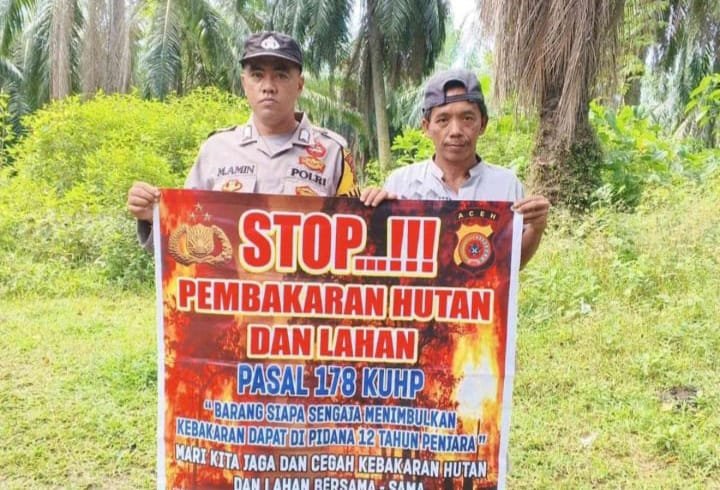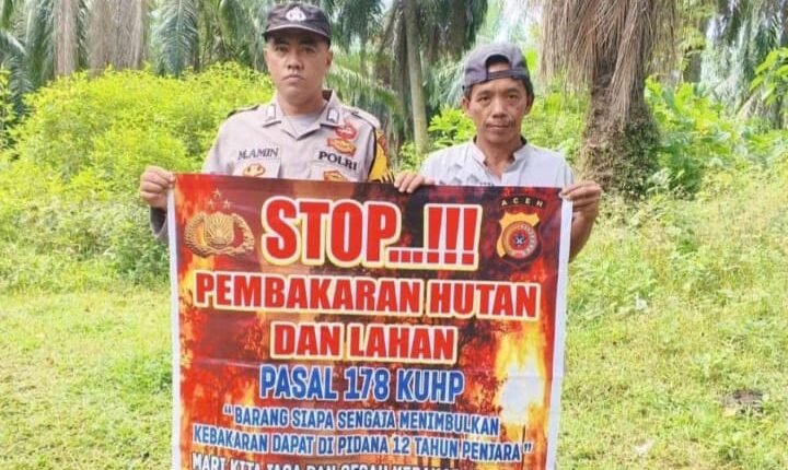 TODAYBERITA.COM| Aceh Tamiang – Polres Aceh Tamiang, Personil Polsek Kejuruan Muda melakukan Patroli sekaligus menyampaikan sosialisasi bahayanya melakukan pembakaran dalam rangka pencegahan dan himbauan terkait kebakaran hutan dan lahan (Karhutla). Sabtu (16/12/2023).