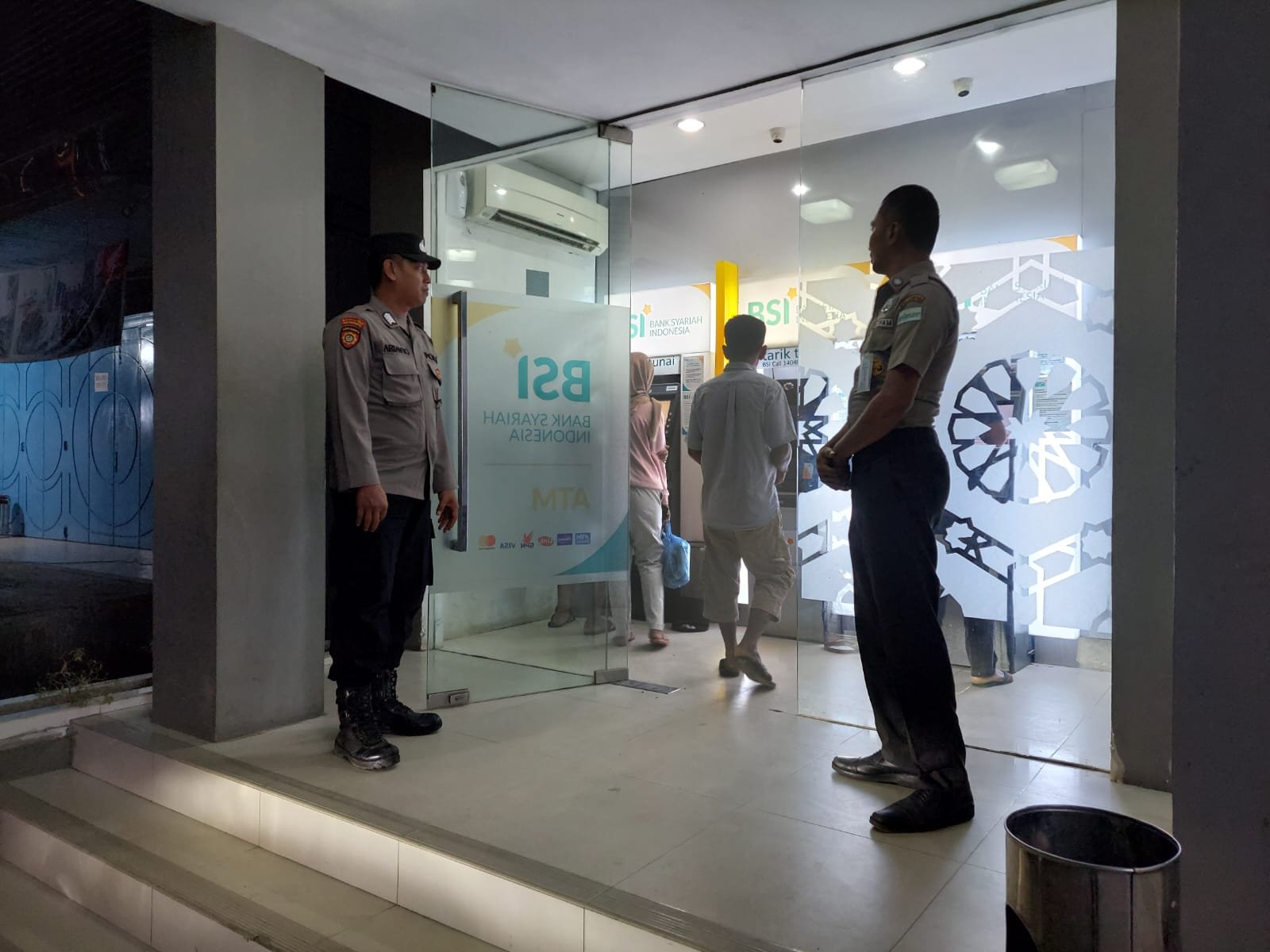 Personel Polsek Kuala Simpang Laksanakan Patroli Malam Hari Mengawasi Kantor Bank Di Wilayahnya