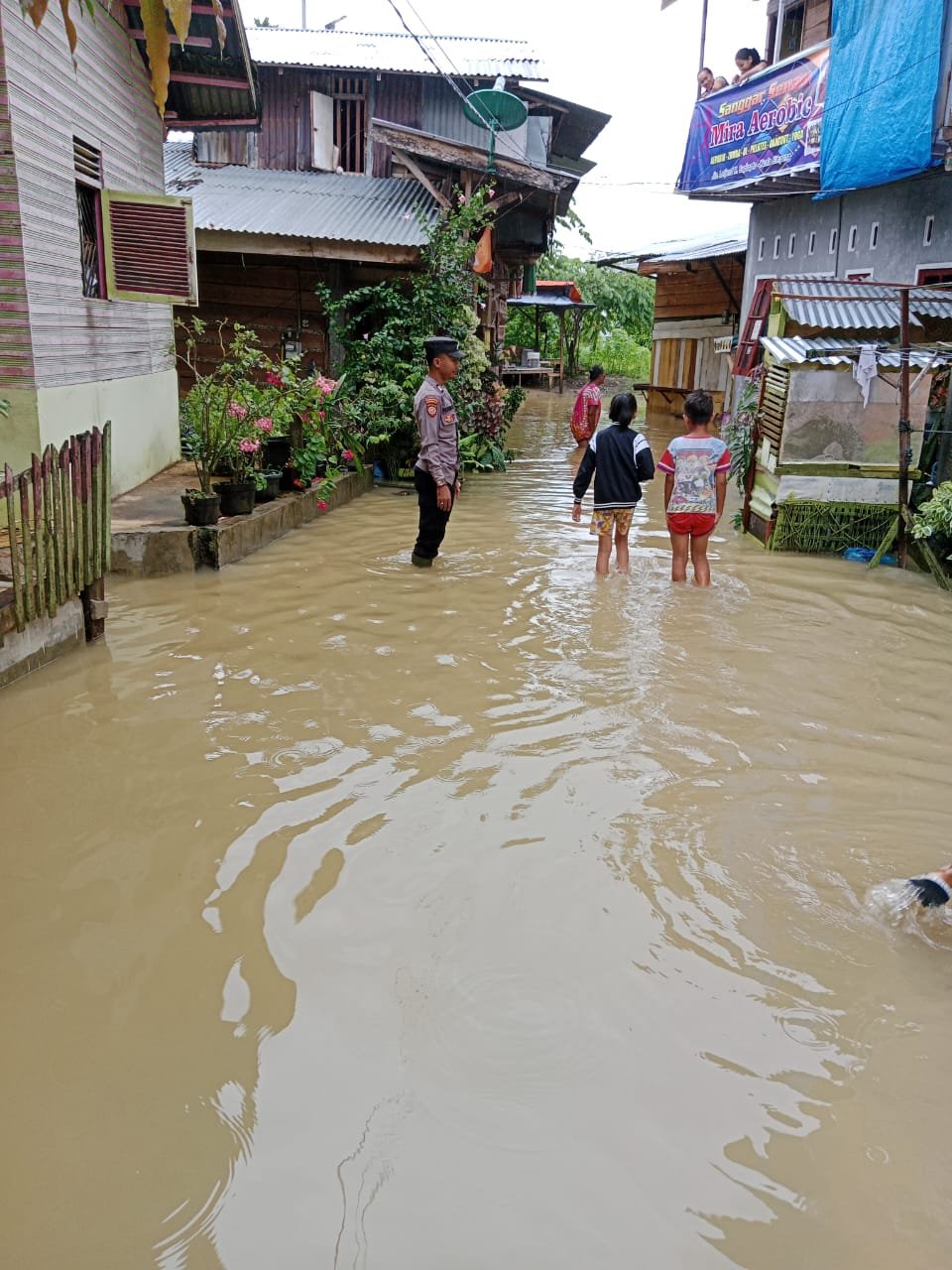TODAYBERITA.COM – Aceh Tamiang | Polda Aceh, Personel Polsek Kuala Simpang melakukan monitoring Debit air di dua Desa yang tergenang air akibat curah hujan yang tinggi. Senin (19/02/2024).