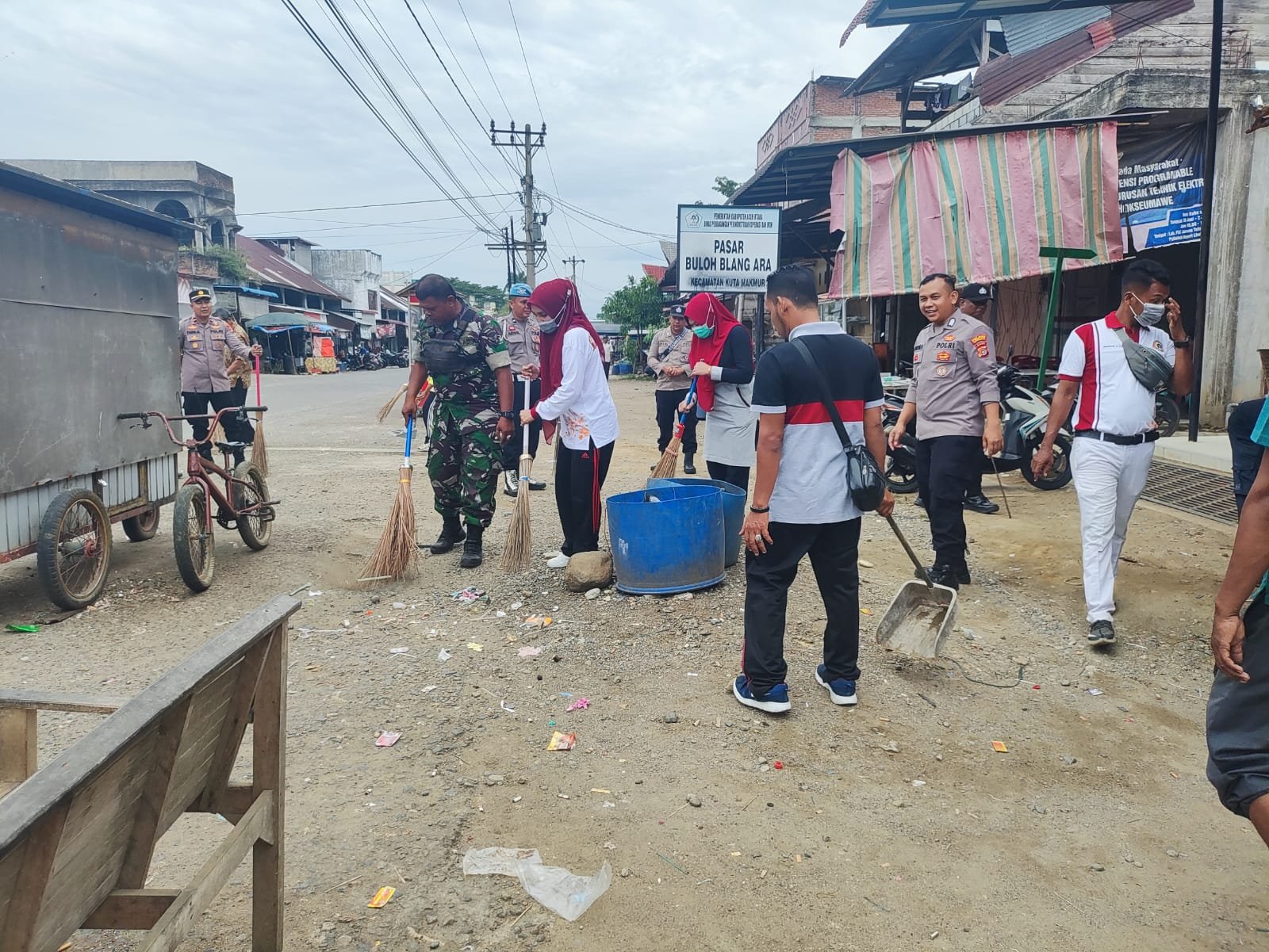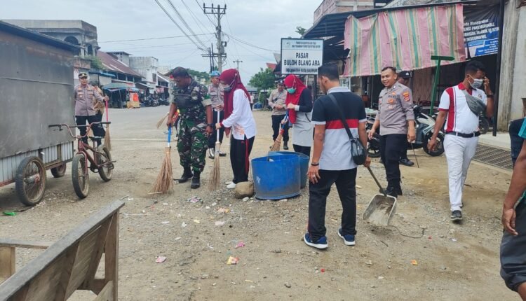 Personel Polsek Kuta Makmur Bersihkan Sampah di Keude Blang Ara