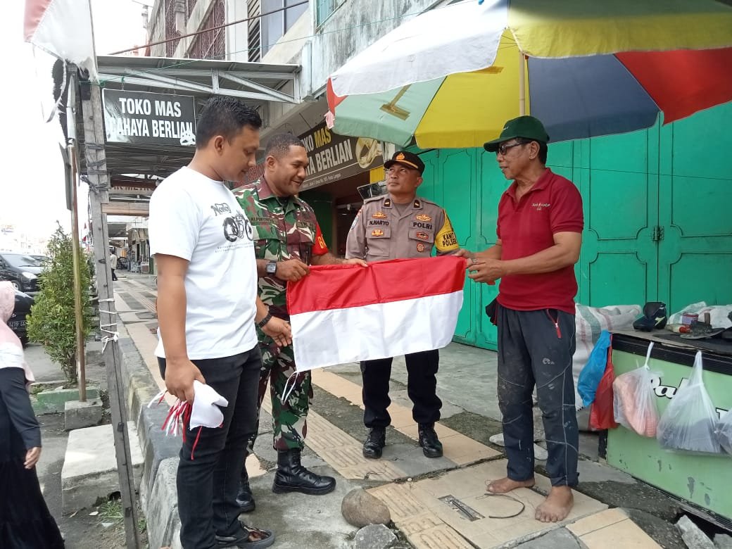 Personel Polsek Langsa Gelar Giat Gerakan Pembagian Bendera Merah Putih