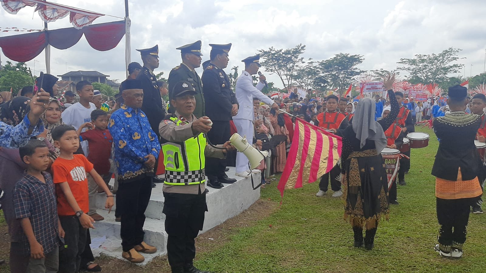 Kegiatan pawai dan Karnaval dalam rangka Memperingati Hari Kemerdekaan Republik Indonesia Ke 78 Tahun 2023 di iringi dengan Dram Band dari SMP 1 Manyak Payed.