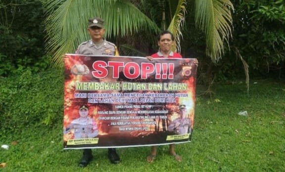 Personel Polsek Rantau Berikan Himbauan karhutla serta Berikan Edukasi Cegah Karhutla