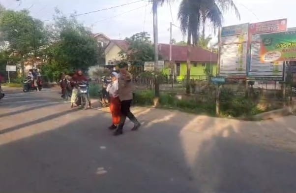 Personel Polsek Rantau Strong Point Pada jam Masuk Sekolah