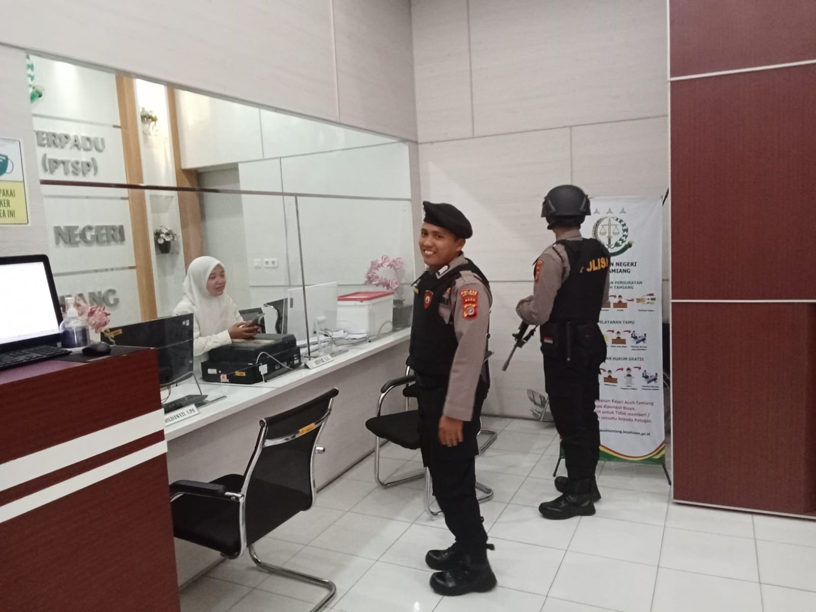 TODAYBERITA.COM – Aceh Tamiang | Personel Sat Samapta Polres Aceh Tamiang Jajaran Polda Aceh Laksanakan Kegiatan Pengamanan penitipan berkas Pidana korupsi di Gedung Kejaksaan Negeri Kuala Simpang. Senin (24/07/2023) sekira pukul 11.00 WIB