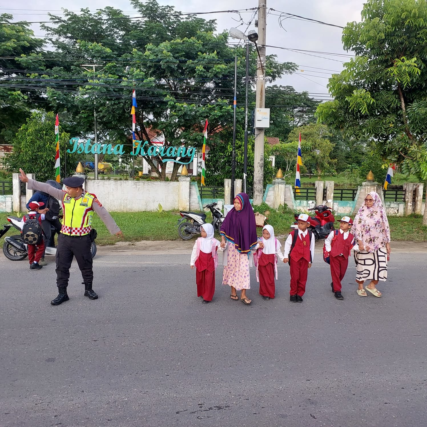 Personel Sat Samapta Polres Aceh Tamiang Jajaran Polda Aceh rutin melaksanakan kegiatan Strong Point di Depan SDN 1 Karang Baru Kabupaten Aceh Tamiang. Senin (28/08/2023) sekira pukul 07.00 WIB