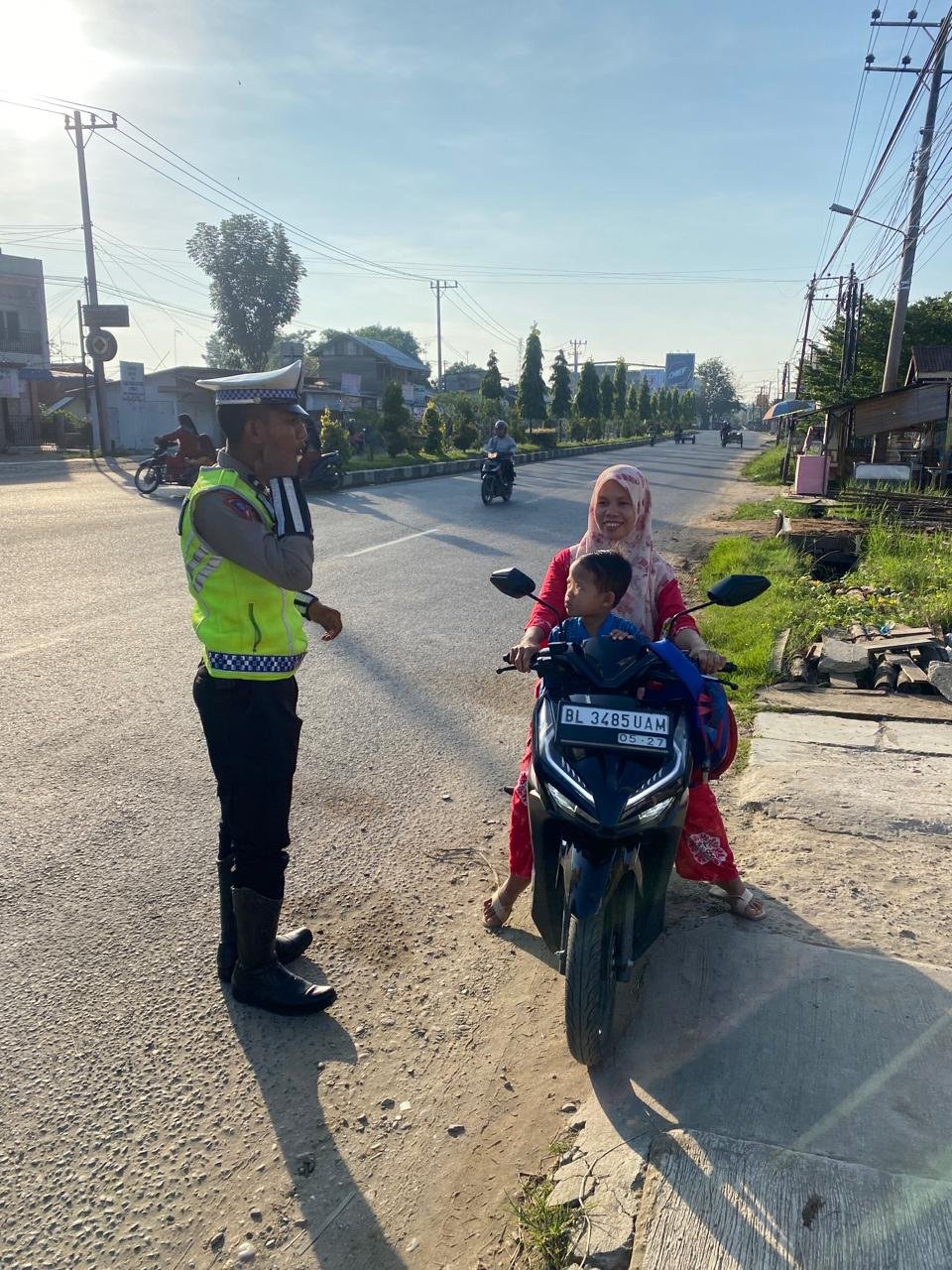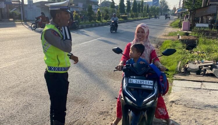Personel Satlantas Polres Aceh Tamiang Laksanakan Patroli Humanis Dikawasan Jalur KTL
