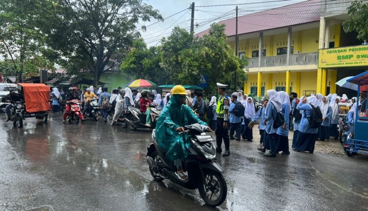 Personel Satlantas Polres Aceh Tamiang Rutin Laksanakan Gatur Pada Zona Aman Sekolah