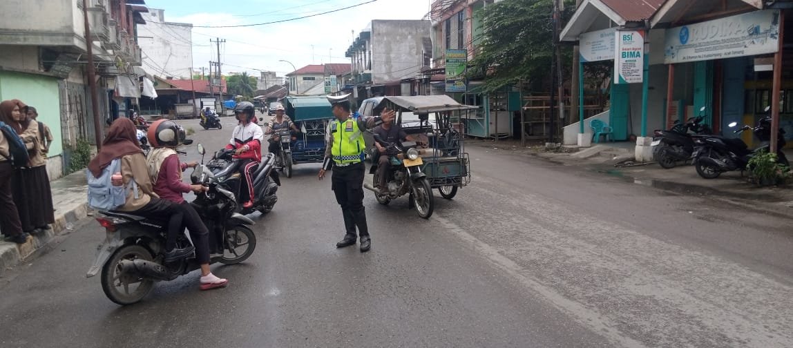Personel Satlantas Polres Aceh Tamiang Rutin Laksanakan Gatur Pada Zona Aman Sekolah