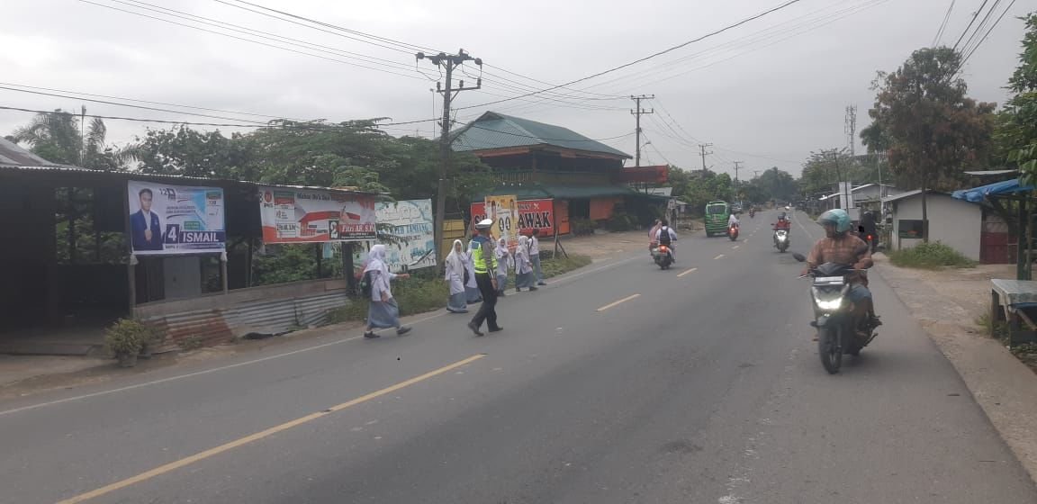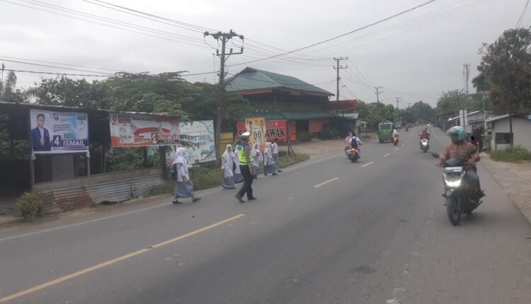 Personel Satlantas Polres Aceh Tamiang Rutin Laksanakan Gatur Pada Zona Aman Sekolah