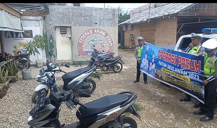 Personel Unit Kamsel Sat Lantas Polres Aceh Tamiang Laksanakan Sosialisasi Operasi Patuh Seulawah 2023