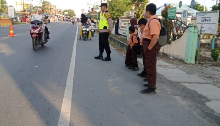 Personil Polsek Manyak Payed Bantu Anak Sekolah Menyeberang Jalan dengan Giat Strong Point