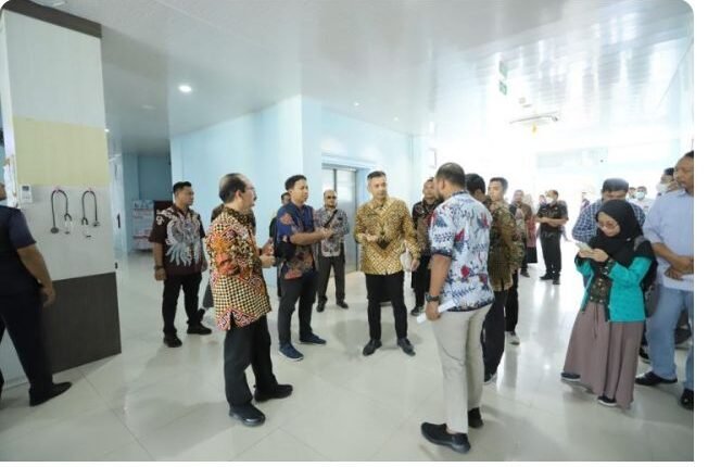 TODAYBERITA.COM | Aceh Tamiang – Penjabat (Pj) Bupati Aceh Tamiang, Dr. Drs. Meurah Budiman, SH, MH, mendampingi kunjungan Direktur Kesehatan dan Gizi Masyarakat Bappenas, Pungkas Bahjuri Ali beserta tim dalam rangka Monitoring dan Evaluasi DAK bidang Kesehatan dan Penanganan Stunting, di RSUD Muda Sedia, Kamis (3/8/2023).