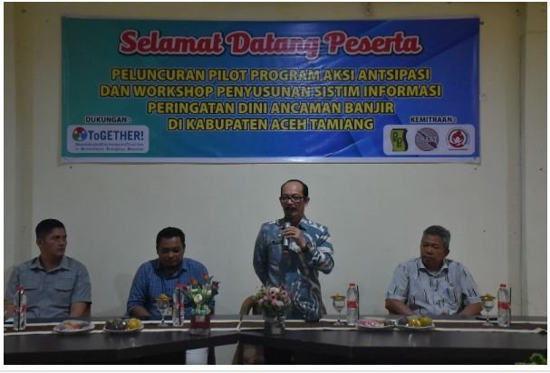 TODAYBERITA.COM| Aceh Tamiang – Pj. Bupati Aceh Tamiang, Dr. Drs. Meurah Budiman, SH, MH membuka peluncuran Pilot Program Aksi Antisipasi dan Workshop Penyusunan Sistem Informasi Peringatan Dini Ancaman Banjir di wilayah hulu dan hilir Kabupaten Aceh Tamiang, Kamis (30/11/23).